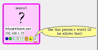 共有の開始バッジの"S"をクリックします。 これは"この人のワールドを見る(See this person's world)"です。